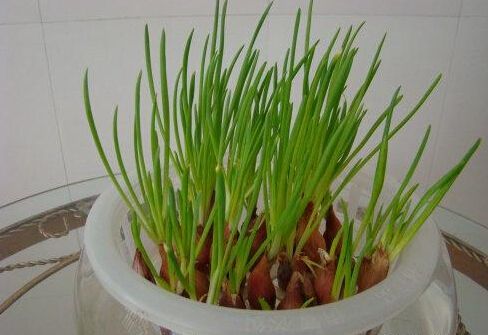 將大蒜放入容器,只須倒入少許水,淹沒蒜根部,一段時間過后,就能長出繁茂青翠的蒜苗了。