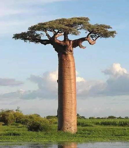 猴面包樹在非洲的馬達加斯加最常見,已經是標志性的植物了,根莖長得像一個瓶子,一棵樹干里通常儲存著300公升的水,難怪它們能在干燥的環境生長500多年。