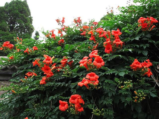 凌霄花耐濕耐陰耐干旱,抗寒能力不錯,重新扦插很容易成活,是遮光避陰的首選植物。葉片和根莖都有一定的藥用價值,可以化淤血。