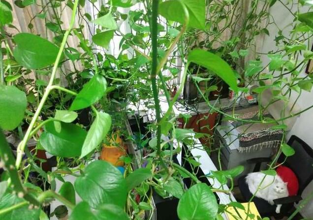 先來(lái)一組小伙伴們養(yǎng)的爬滿屋子的綠蘿實(shí)況,雖說(shuō)有的顯得有點(diǎn)凌亂,但并不妨礙它們長(zhǎng)得高大的事實(shí)