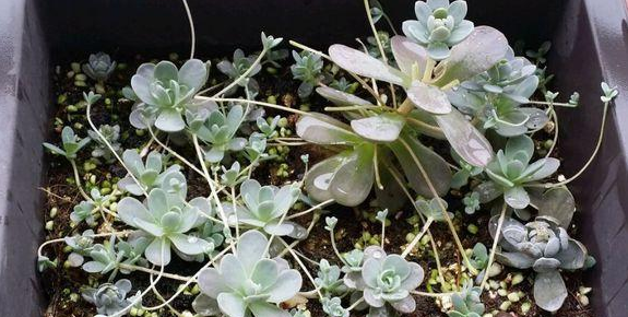 冬季如果溫度能夠保持0度以上,都是可以給水的,0度以下就要斷水,否則就容易凍傷了。冬季雖然寒冷,可也不是一個冬季都不給一點水,也會在適當的時候微微給點水在植株的根部,切勿噴霧或給大水,冬季葉心水分停留太久,也容易引起腐爛,水大還會爛莖。春季溫度上升后就可以慢慢恢復正常給水。藍石蓮是比較好養的一個品種,四季中除了夏季要注意適當遮陽,其他季節都可以全日照。土壤用的是泥炭混合了顆粒的煤渣河沙等,土表鋪設干凈的顆粒河沙,配土以透氣為主。