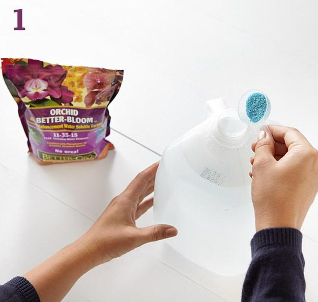 步驟一:找一個(gè)桶裝滿水(自來水就可以),放入一勺蘭花肥料