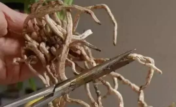 第2步:按照植株的大小確定保留根部的長短,植株越大保留的根就要越長,一般草花根部只要留15厘米左右的長度即可,多余部分剪掉。另外,植株上的枯枝敗葉或者生病的部分也要剪除。