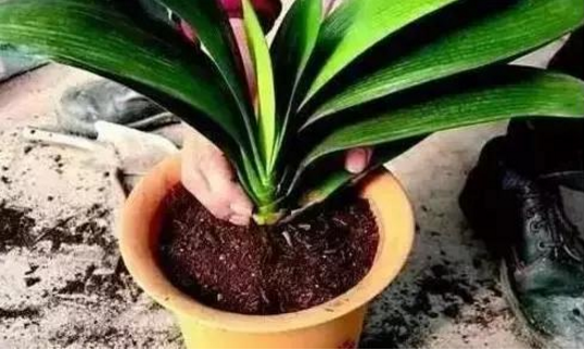 第4步:將混合好的土壤加入新盆中,大概1/3的高度,用手稍微壓實,放入植株,再加入土壤到八分滿即可。