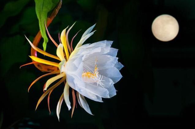 曇花開放的時間與氣象條件有一定的關系。曇花的花瓣大而嬌嫩,需要一定的溫濕度條件才能開放。白天溫度過高,空氣干燥;深夜,氣溫又過低,對曇花的開放都不利,只有晚上九點到十點左右,天氣冷熱適宜,加上空氣濕潤,比較適合曇花的開放,而且曇花對光照強度的變化比較敏感,當夜幕漸漸降臨時,它便感知黑暗來臨的信息,這樣就給欲放的蓓蕾做好了開花的準備。一入夜就開花,而且只開3個小時左右。到了深夜零點左右,氣溫漸漸降低,于是曇花就開始萎縮,這樣曇花的開放期,避免了高溫低溫的傷害。