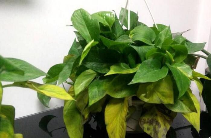癥狀:與綠蘿的相似,葉子發蔫兒,還會伴隨發黃。