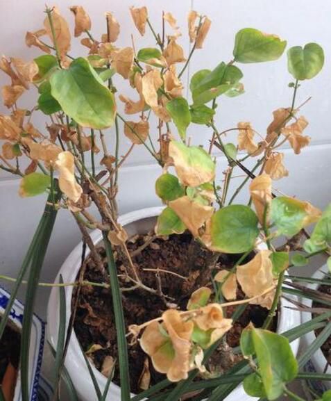處理:先將其搬至半陰半陽的位置,給其修剪枯枝,并停止施肥,等到盆土干透了再澆水,待到氣溫回升時,就會重新長出新枝葉。